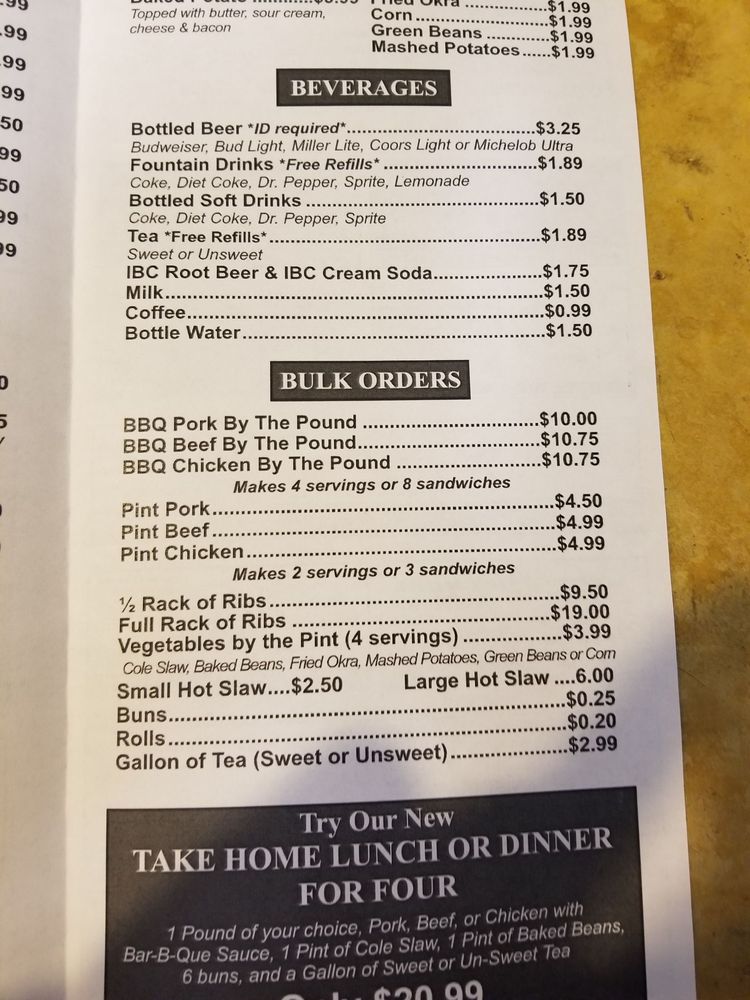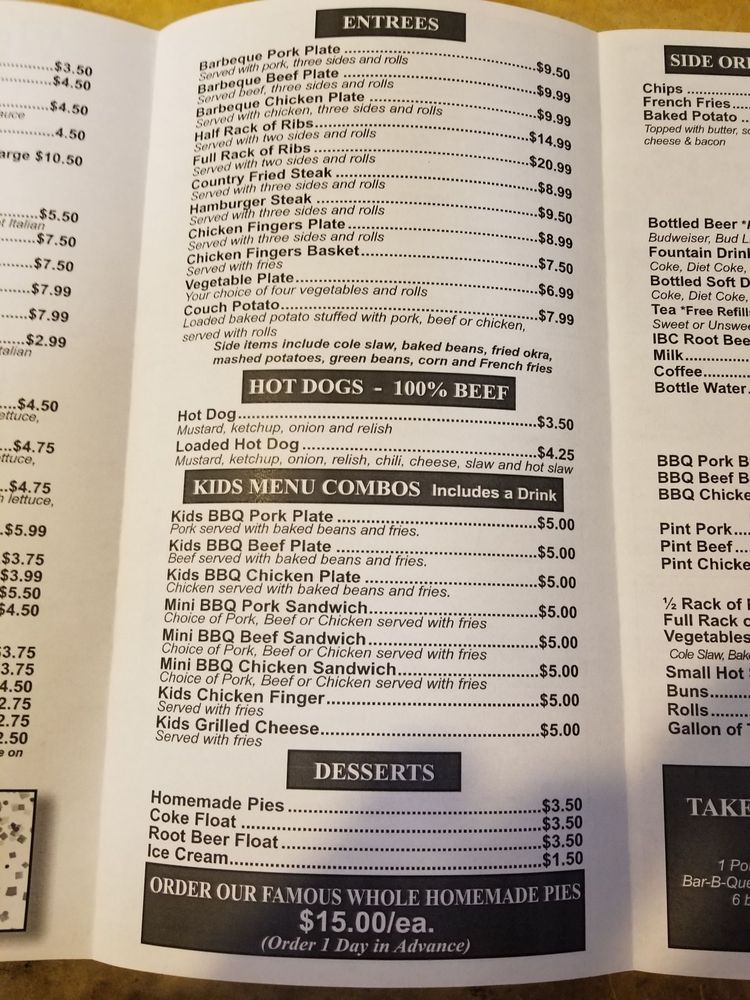 Introducing the menu at Couch's Barbecue, a vintage family diner serving up delicious barbeque classics since 1946. Located at 8307 Old Lee Hwy in Ooltewah, TN, this spot is a local favorite for good reason. The menu offers a variety of options, from appetizers like onion rings and cheese sticks to hearty sandwiches like the barbeque sandwich with your choice of protein. Customer reviews rave about the BBQ pork, ribs, and tasty desserts made in-house daily. The cozy atmosphere, friendly service, and affordable prices make this diner a must-visit. Don't miss out on their signature sauces and mouthwatering dishes that keep customers coming back for more. Couch's Barbecue is a gem worth discovering for a satisfying meal with a side of nostalgia.